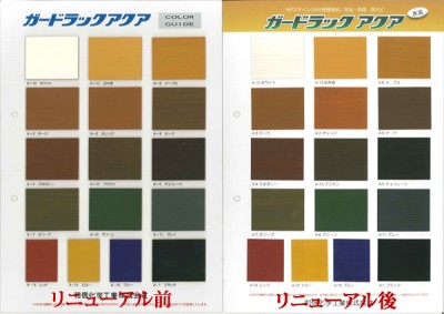営業 「いや、それは違うんですよ。実はね、ガードラックアクアは約5年前にリニューアルされたんです。確かに木目が若干ではあるけど透けるようになったから、塗料の中身を薄くしたんじゃないかって問い合わせもリニューアル当時は多々あったんですよ。でも、そうじゃないんです。薄くしたんじゃなくて、木材への浸透率を上げたから、結果的に表面に残る分が少なくなって、以前のものより木目が透けて見えるんですよ。そして、木材への色の食いつきもメチャクチャ良くなったんですよ~!!」