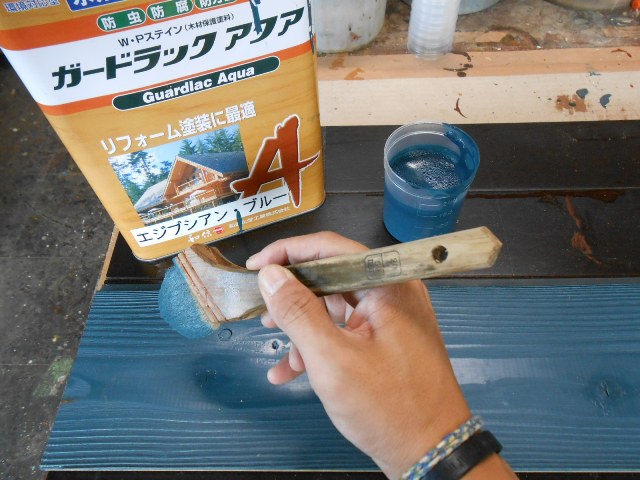 エナメルなどで施工される方もおられますが、エナメルは時間の経過とともにめくれるのが難点です。ガードラックアクアはエナメルのような膜を作ってないのでパラパラ剥がれたりということもありません。また、適度な隠ぺい性があるのでステインでやられる時ほど手間がかからないのも魅力です。