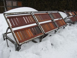 屋外暴露2年間をスギ・ヒノキ・カラマツ・トドマツにて行った結果として色の変化や経年の撥水度などが報告されています。