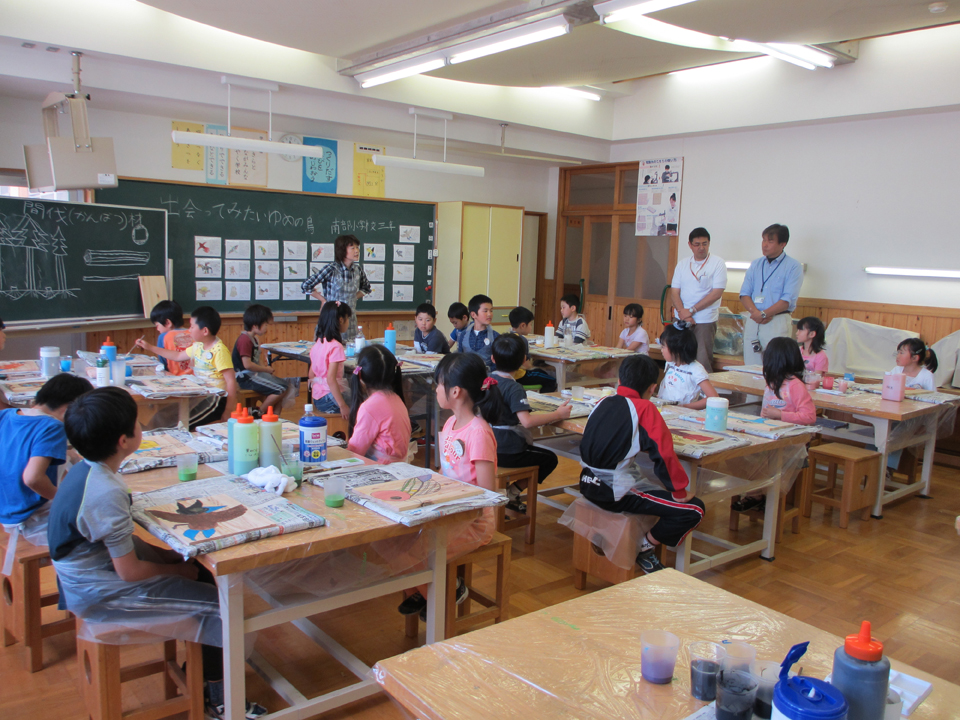 間伐の際に伐採した木材を板材に加工して『木のスケッチブック』を作り、環境学習の材料として提供致しました。