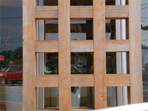始めに裏面、格子の内枠や格子表面の横部分を塗装していきます。格子表面の縦部分は上から下まで一本で繋がっている(2枚目の写真参照)ので、塗り継ぎムラがないように最後に一気に塗装。
