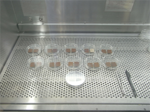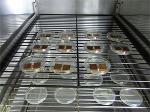 今回は、私が社内で行っております、カビ抵抗性試験の風景を