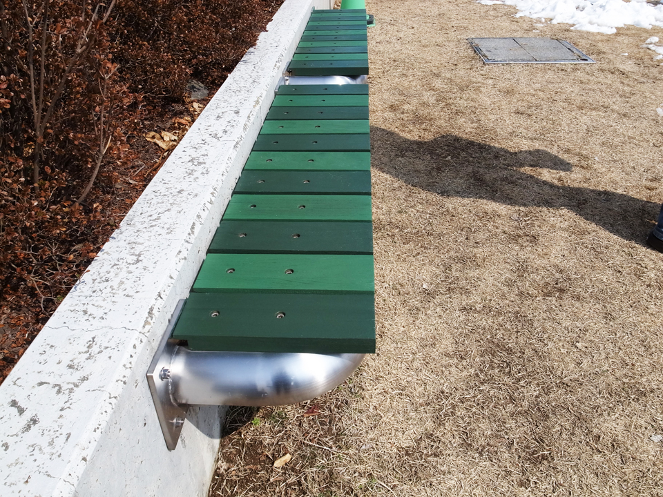 J2クラブ松本山雅FCのホームスタジアムである松本平広域公園内の『アルウィン』ベンチを、弊社の社員がボランティア塗装をしました。