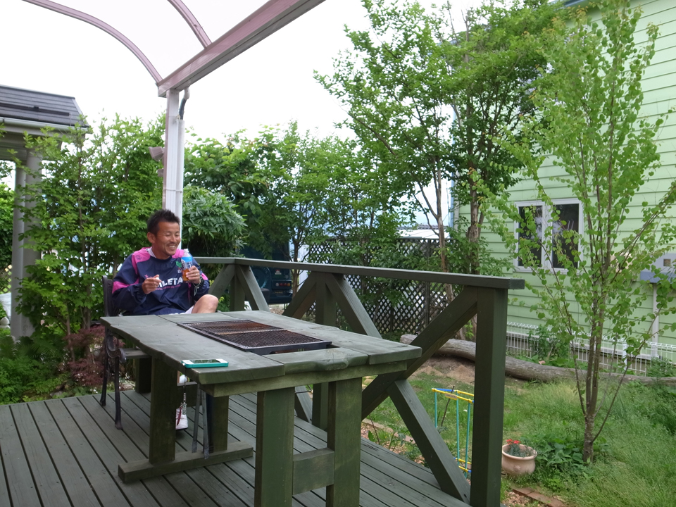 その後、地元のスポーツチームをイメージしたガードラックアクアのオリジナル色を塗装して、上塗りに雪から木材を守るためにアクレックスNo3200外部用クリヤーを使用しています。