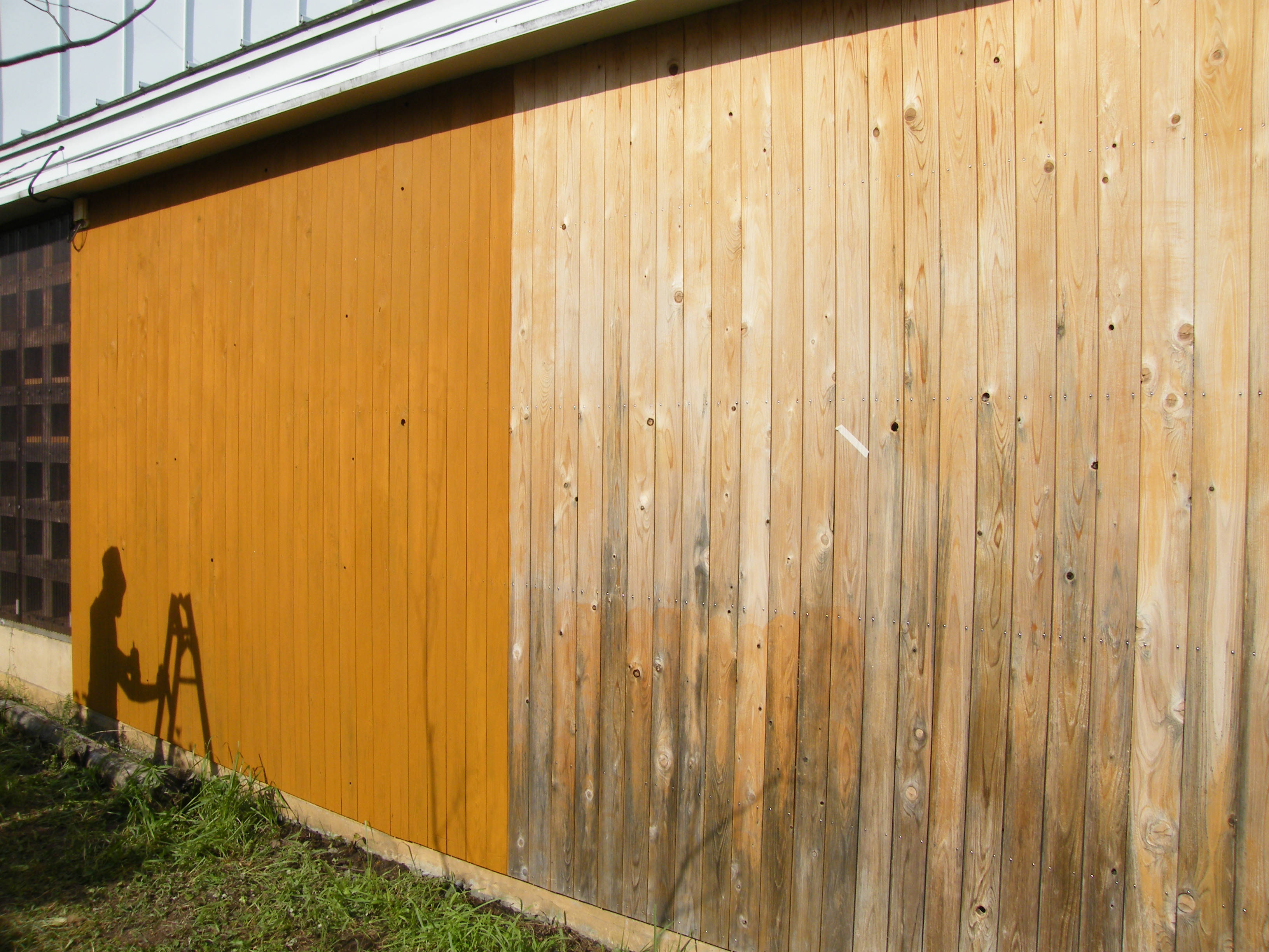 まずは、木材と塗料の密着が良くなるように外壁の汚れを水洗いで落とします。高圧洗浄機をお持ちであれば簡単に汚れを落とせますが、木材にノズルを近づけすぎて傷めないようにお気を付け下さい。