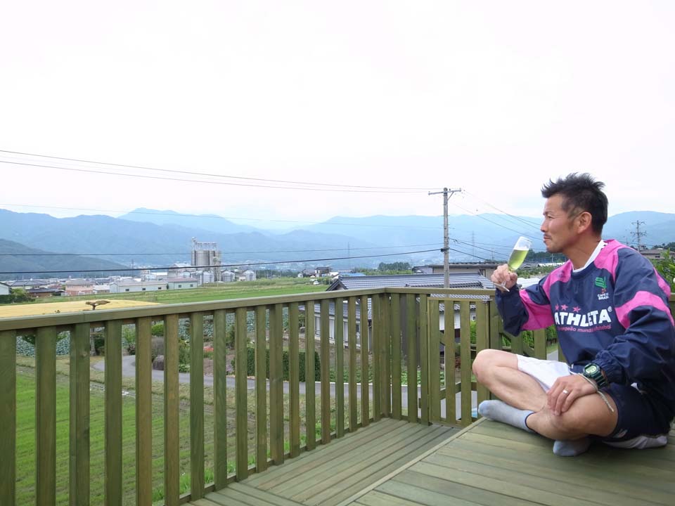 ある日2階の窓から南アルプスを見ていたら、屋根の上に展望台があったらいいなって閃いたんだよね。自分が閃いたってことは家族みんなの願いだと思って、知り合いの材木屋さんにすぐ電話したんだ。展望台のだいたいの図面を描いたあと、現場でアレンジをしていって、1か月もたたずに出来上がったよ。